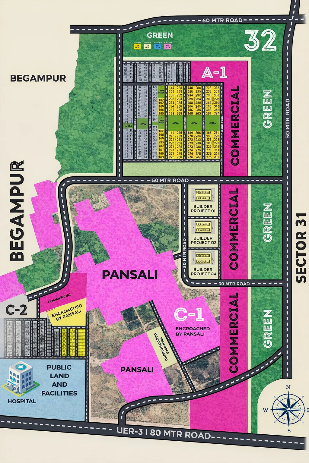 Based on the layout and residential plot planning visible in the sector maps: